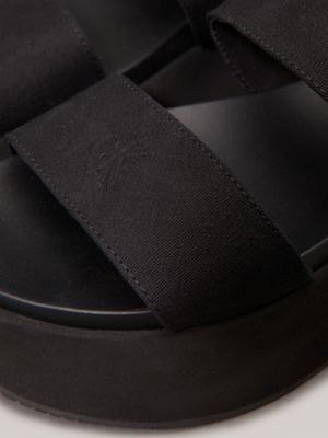 The sandal upper is crafted with 60% recycled cotton, created by reprocessing existing cotton materials.