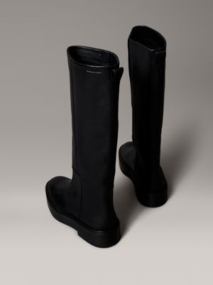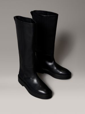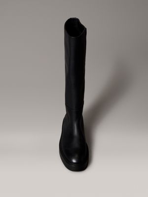 Leather Stacked Heel Knee Boots